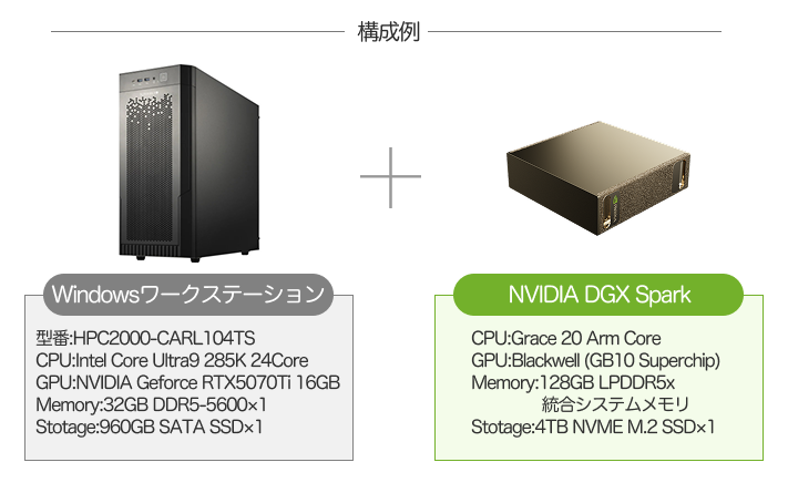 ① 入門~中級AIユーザー向け:PC + NVIDIA DGX Spark セット