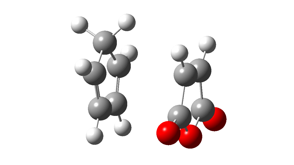 反応経路探索の基本的な例として、Diels-Alder反応の2点間探索を実施してみました。