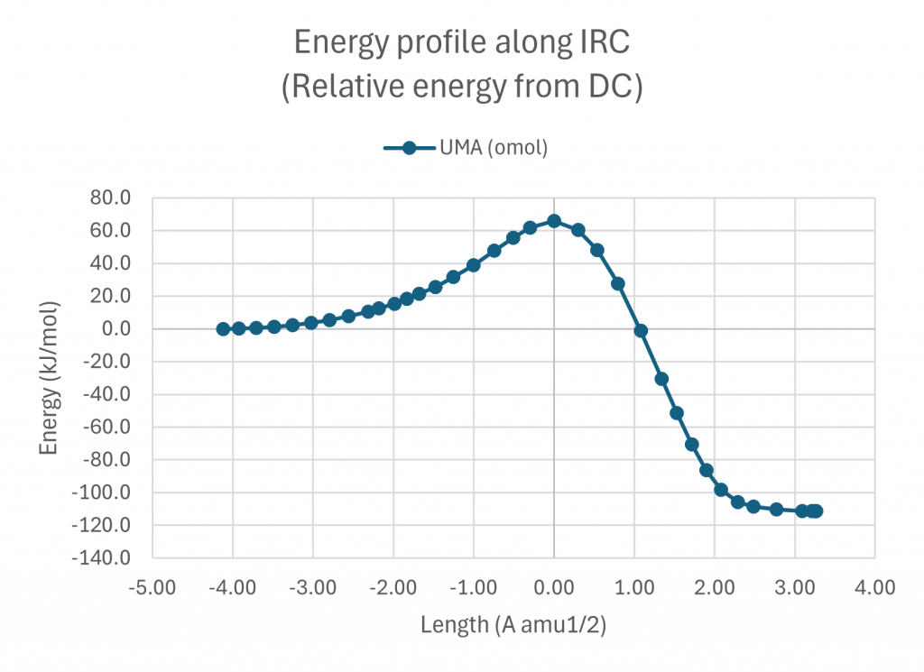 この結果、得られた反応経路(IRC)を次に示します。